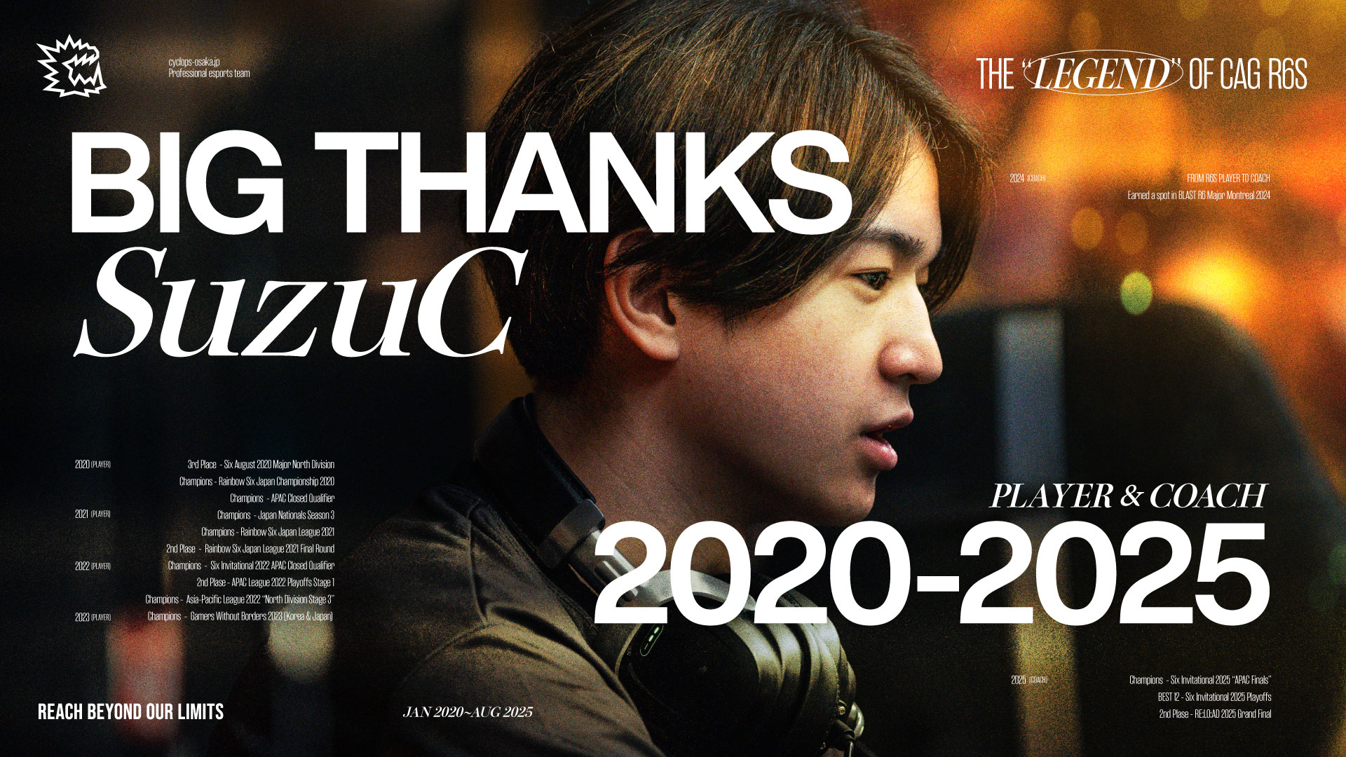 この度、シージ部門の「SuzuC」コーチが契約期間満了に伴い、引退することとなりました。