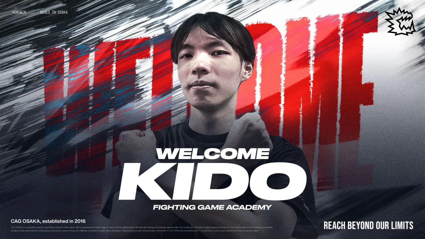 CAG OSAKAは、新たに「格闘ゲームアカデミー」を新設いたします。 第1号メンバーとして、Kido選手が加入いたします。